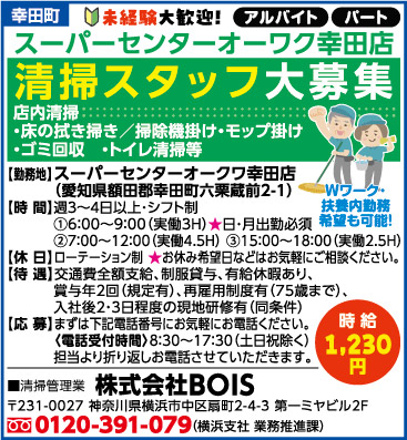 | 勤務地 | スーパーセンターオーワク幸田店 額田郡幸田町六栗蔵前2-1 |