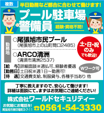 勤務地 尾張旭市民プール(尾張旭市上の山町間口2485)、ARCO清洲(清須市清洲2537)