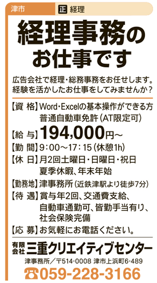 津市北丸之内12番 セントラルアーク津501 TEL:059-224-9000 津田・小野