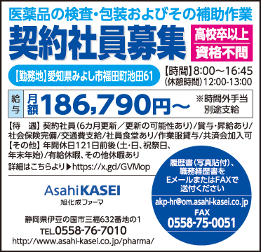 静岡県伊豆の国市三福632番地の1 TEL:0558-76-7010 メール:akp-hr@om.asahi-kasei.co.jp