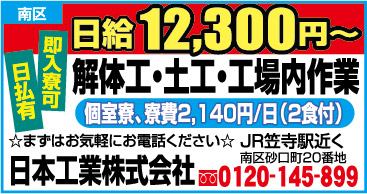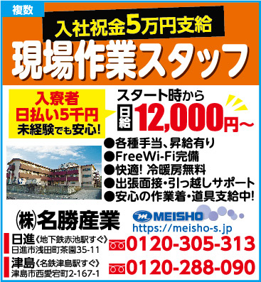 日払制度有/即個室入寮可 お気軽にお電話ください。詳しくご説明いたします。
