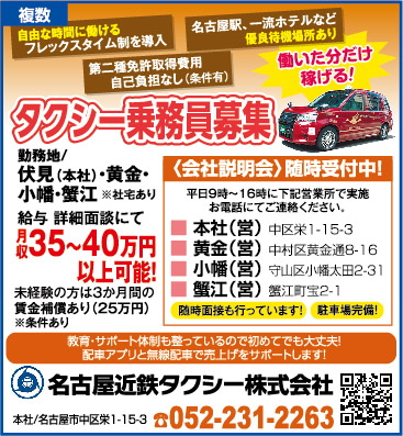 働いた分だけ稼げます。市内に優良待機場所あり。面接随時。配車アプリで売上をサポート!